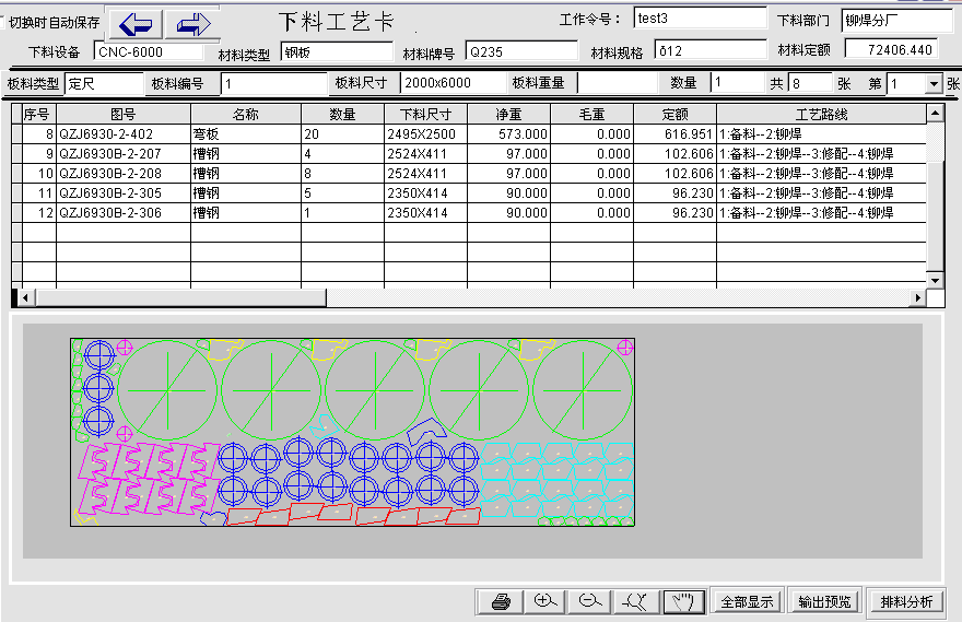 下料車間除了具有一般車間的執行功能以外,由于大量的使用各種型材、板材,為控制材料利用率、合理物料采購與下料,提供了針對下料車間的集中下料管理.